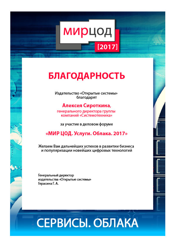 - Форум «Мир ЦОД-2017. Сервисы. Облака»