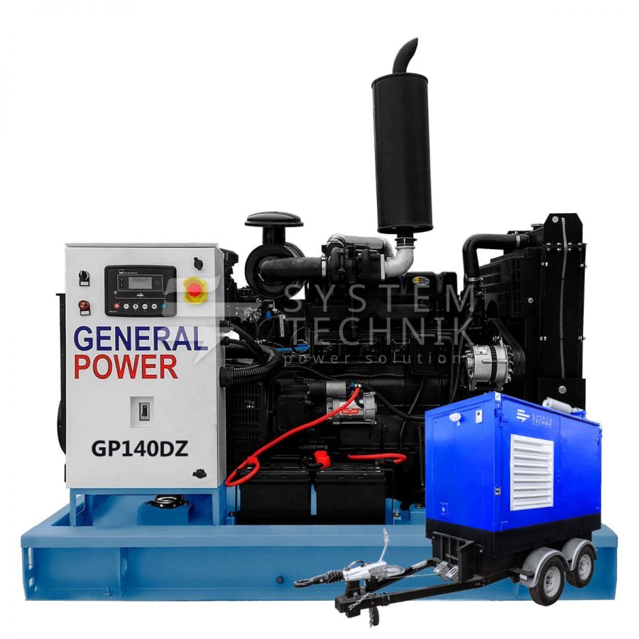 - Дизельный генератор General Power GP140DZ в контейнере на прицепе
