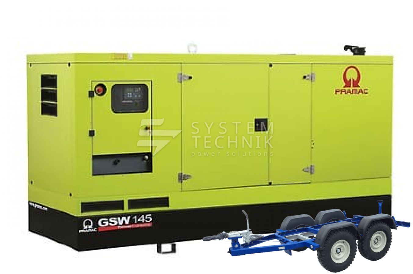 - Дизельный генератор Pramac GSW 145 V 230V 3Ф В кожухе на прицепе