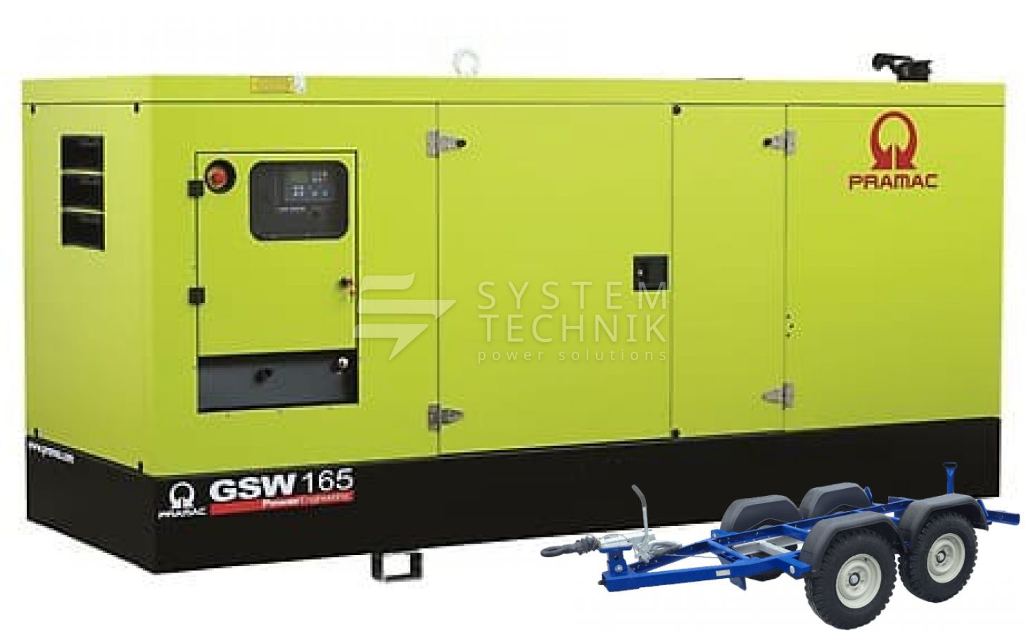 - Дизельный генератор Pramac GSW 165 V 230V 3Ф В кожухе на прицепе