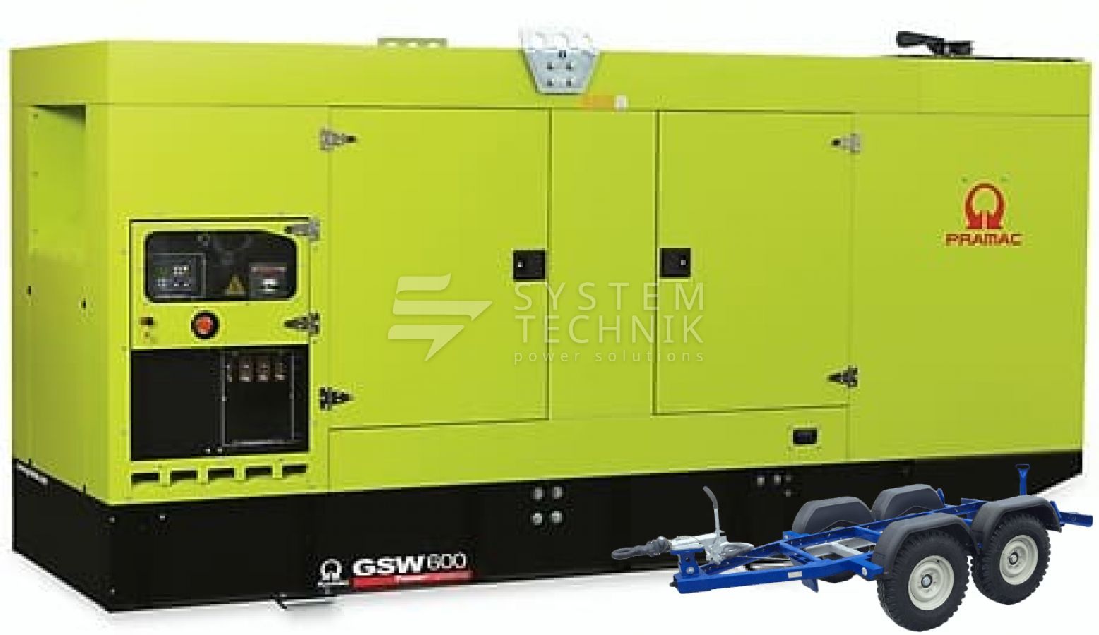- Дизельный генератор Pramac GSW 600 V 400V В кожухе на прицепе