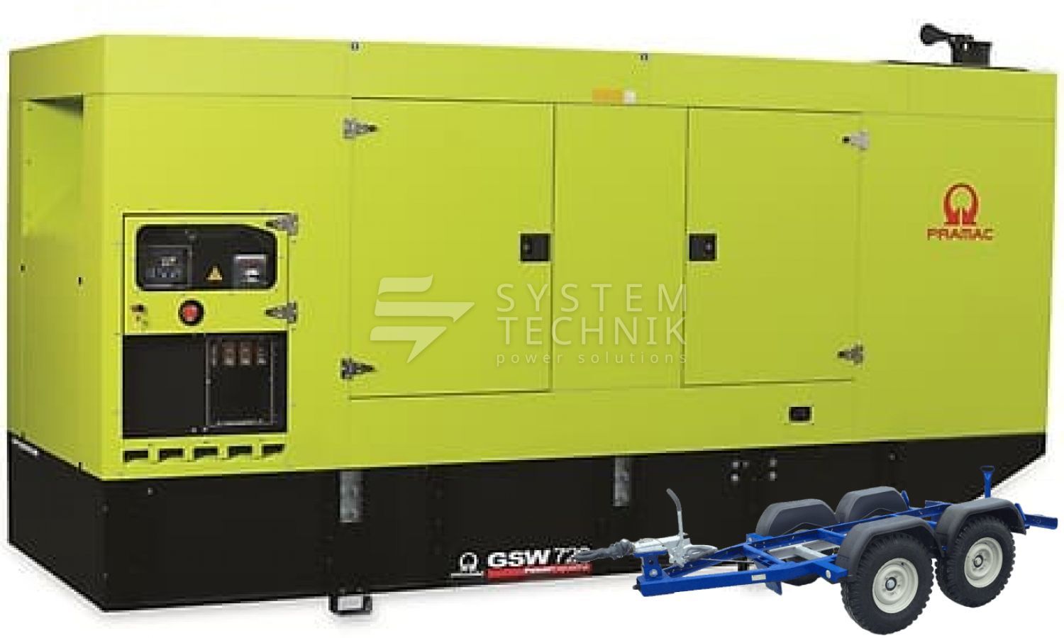- Дизельный генератор Pramac GSW 720 P 400V В кожухе на прицепе
