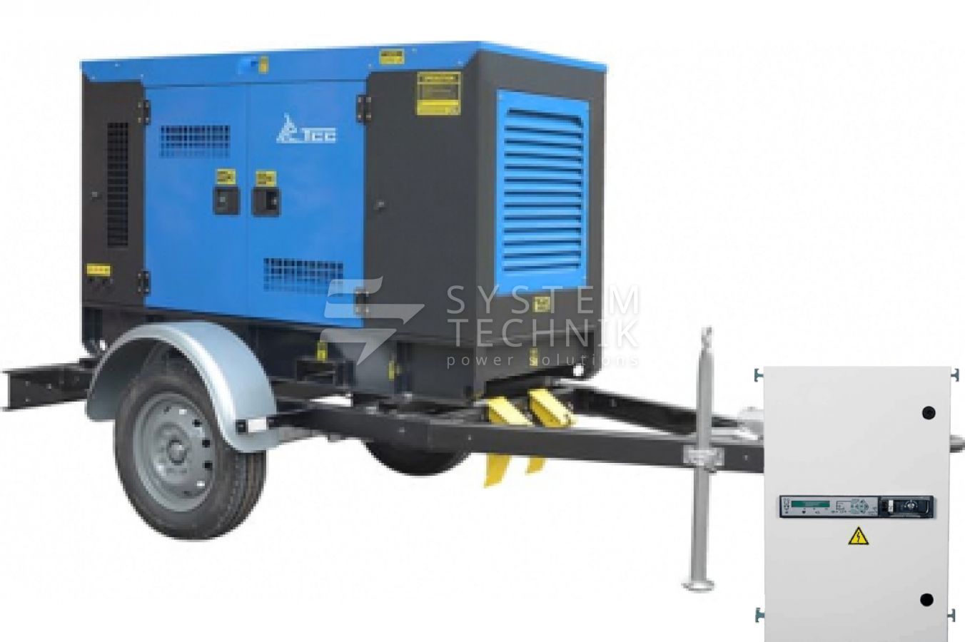 - ТСС ЭД-80-Т400-2РКМ7 в шумозащитном кожухе на прицепе с АВР
